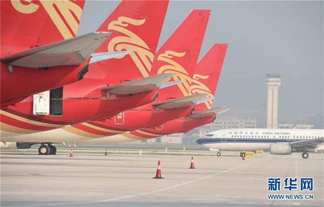 飛機(jī)停在廣西南寧吳圩機(jī)場(chǎng)(2014年9月25日攝)。