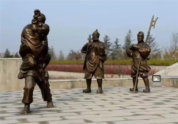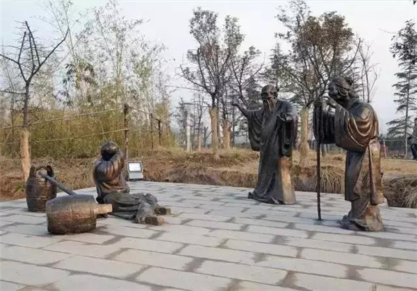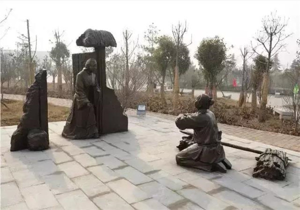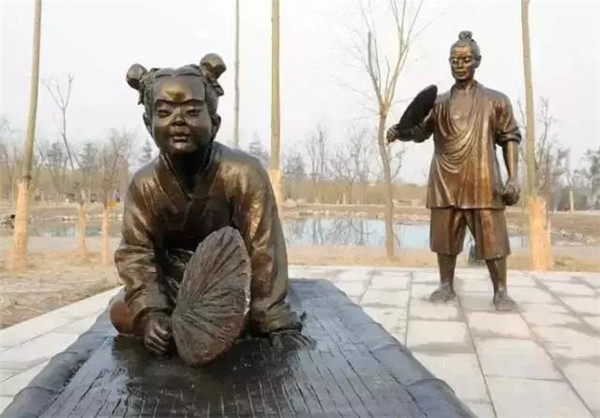 董永,相傳為東漢時期千乘人,年少喪母,因避兵亂遷居安陸。其后父親亡故,董永賣身至一富家為奴,換取喪葬費用。上工路上,于槐蔭下遇一女子,自言無家可歸,二人結(jié)為夫婦。女子以一月時間織成三百匹錦緞,為董永抵債贖身,返家途中,行至槐蔭,女子告訴董永:自己是天帝之女,奉命幫助董永還債。言畢凌空而去。因此,槐蔭改名為孝感。