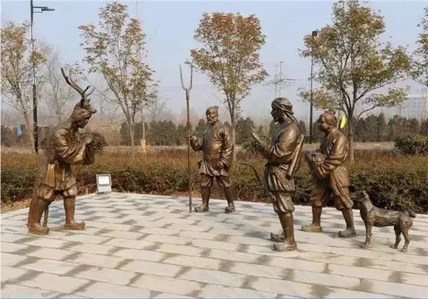 春秋時期的郯子,父母年老,患眼疾,需飲鹿乳療治。他便披鹿皮進入深山,鉆進鹿群中,擠取鹿乳,供奉雙親。一次取乳時,看見獵人正要射殺一只麂鹿,郯子急忙掀起鹿皮現(xiàn)身出走,將擠取鹿乳為雙親醫(yī)病的實情告知獵人,獵人敬他孝順,以鹿乳相贈,護送他出山。
