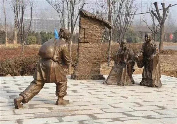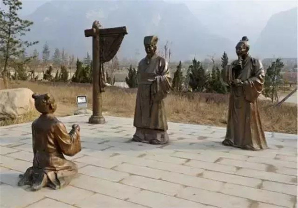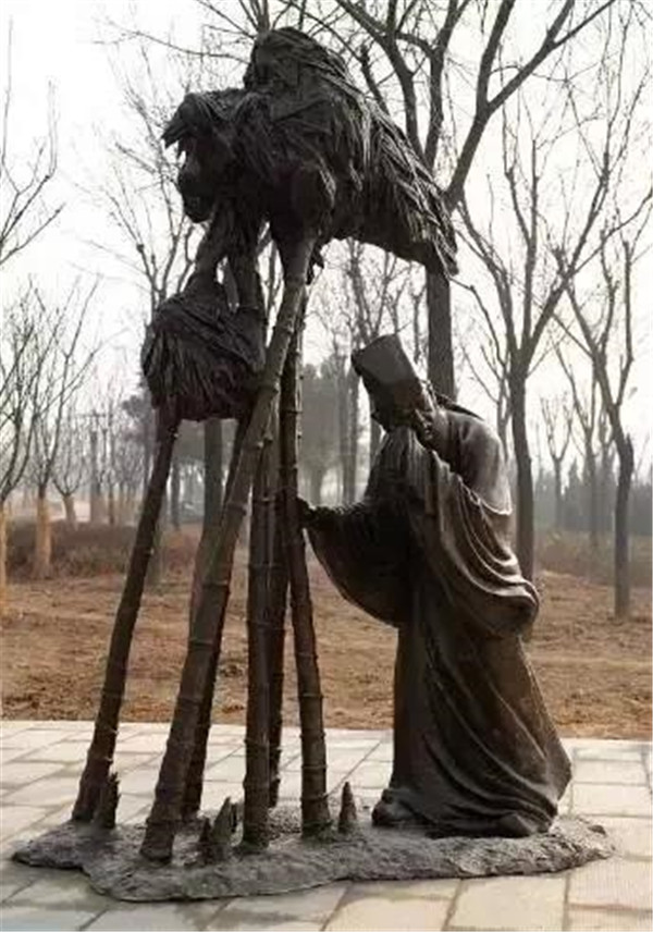 丁蘭,相傳為東漢時期河內(nèi)人,幼年時父母雙亡,他經(jīng)常思念父母的養(yǎng)育之恩,于是用木頭刻成雙親的雕像,事之如生,凡事均和木像商議,每日三餐敬過雙親后自己方才食用,出門前一定稟告,回家后一定面見,從不懈怠。久之,其妻對木像便不太恭敬了,竟好奇地用針刺木像的手指,而木像的手指居然有血流出。丁蘭回家見木像眼中垂淚,問知實情,遂將妻子休棄。