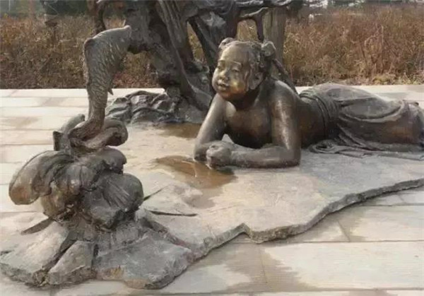 姜詩,東漢四川廣漢人,娶龐氏為妻。夫妻孝順,其家距長江六七里之遙,龐氏常到江邊取婆婆喜喝的長江水。婆婆愛吃魚,夫妻就常做魚給她吃,婆婆不愿意獨自吃,他們又請來鄰居老婆婆一起吃。一次因風大,龐氏取水晚歸,姜詩懷疑她怠慢母親,將她逐出家門。龐氏寄居在鄰居家中,晝夜辛勤紡紗織布,將積蓄所得托鄰居送回家中孝敬婆婆。其后,婆婆知道了龐氏被逐之事,令姜詩將其請回。龐氏回家這天,院中忽然噴涌出泉水,口味與長江水相同,每天還有兩條鯉魚躍出。從此,龐氏便用這些供奉婆婆,不必遠走江邊了。