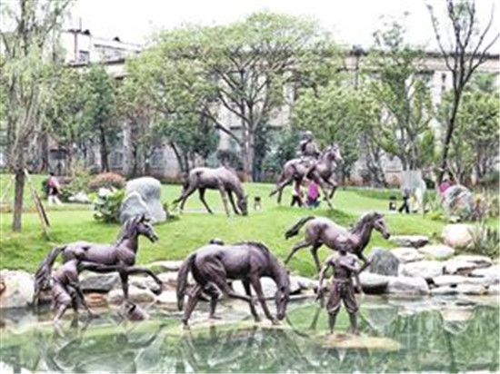 今年6月30日,《翠湖周邊歷史文化片區(qū)整治提升規(guī)劃》中的翠湖洗馬河水系恢復(fù)及帶狀公園對(duì)外開(kāi)放,消失許久的“柳營(yíng)洗馬”景觀重現(xiàn)翠湖邊,蜿蜒的河道從兩岸柳蔭下穿過(guò),無(wú)論是具有明清歷史特色的兵馬奔騰的青銅雕塑,還是古樸典雅的活字印刷,抑或是獨(dú)特的噴泉造型,無(wú)不重現(xiàn)了600多年前沐英“柳營(yíng)春試馬、虎帳夜談兵”的歷史文化,吸引著過(guò)往市民和游客,被稱為“昆明之眼”的翠湖,因其更具亮色。