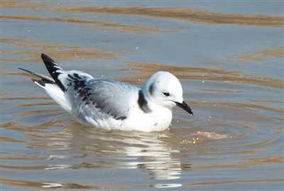 這是一只身體雪白,但有幾點黑色(嘴黑、腿黑、尾也黑)點綴的美麗精靈,在寧湖濕地公園,它時而悠閑地在水面游弋,時而俯沖進水面捕魚。經西寧市觀鳥協(xié)會負責人王艦艇判斷,那是一只三趾鷗,是一種海洋鳥,它現(xiàn)身西寧,是極為罕見的。