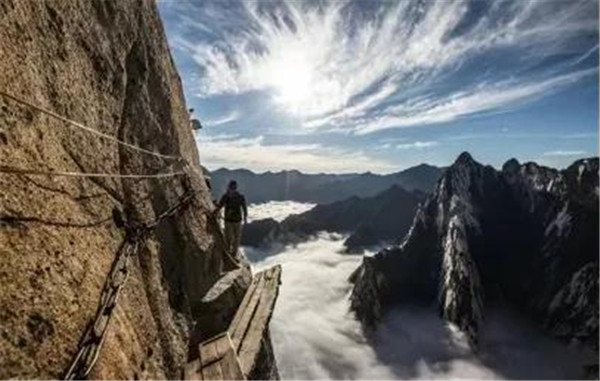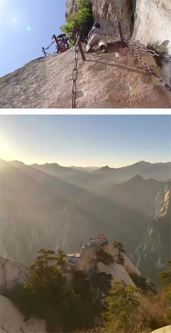 接下來你將會挑戰(zhàn)——華山五大險(xiǎn)關(guān)。這五道險(xiǎn)關(guān)分別是千尺幢、百尺峽、老君犁溝、擦耳崖和蒼龍嶺。