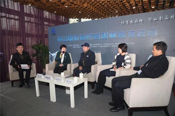 會(huì)上,渭南市政府副秘書長李曉京致歡迎詞,集團(tuán)副總經(jīng)理趙江鋒對華山及周邊旅游資源進(jìn)行了介紹,攀巖名將、洲際定線員邱洪樹介紹了華山巖壁考察情況,來自英國的攀巖運(yùn)動(dòng)員Eli Hardie Howes向與會(huì)人員分享了華山巖壁攀登的感受。
