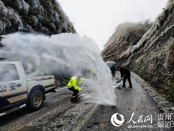 為防止凝凍帶來的各種隱患,保障司乘人員的生命財產(chǎn)安全,貴州各部門立即啟動緊急預案,迅速行動,不僅加大對各道路的巡邏管控,還連夜組織養(yǎng)護部門對轄區(qū)凝凍路段及易凝凍路段進行拋撒融雪劑。