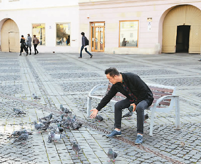 中國游客在羅馬尼亞錫比烏廣場休閑。新華社記者陳 進(jìn)攝 |