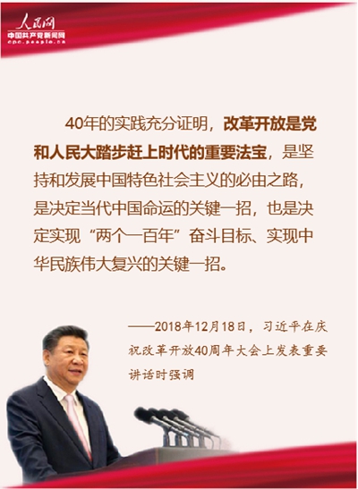 40年的實(shí)踐充分證明,改革開放是黨和人民大踏步趕上時(shí)代的重要法寶,是堅(jiān)持和發(fā)展中國(guó)特色社會(huì)主義的必由之路,是決定當(dāng)代中國(guó)命運(yùn)的關(guān)鍵一招,也是決定實(shí)現(xiàn)“兩個(gè)一百年”奮斗目標(biāo)、實(shí)現(xiàn)中華民族偉大復(fù)興的關(guān)鍵一招。