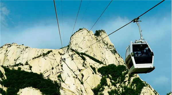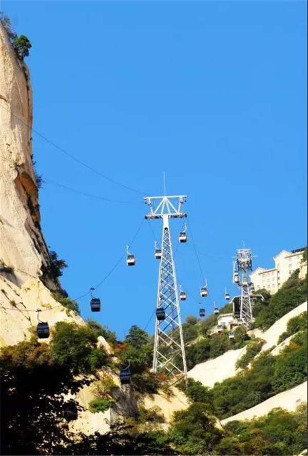 其實,而今作為旅游勝地的華山,已不似古人所記所述,登山道路平整而闊,道旁鐵鏈石欄相護,已無危險之虞,可謂“險而無危”。如今,登頂華山的方式也已經(jīng)不止步行登山了,索道的建成使更多游人登頂華山的愿望成為現(xiàn)實。