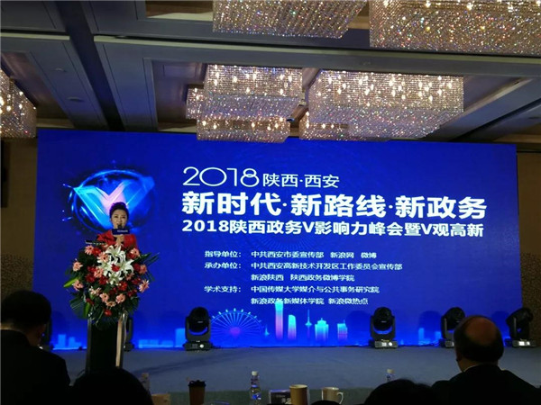 12月21日下午,由西安市委宣傳部、新浪網(wǎng)、微博指導,西安高新技術(shù)產(chǎn)業(yè)開發(fā)區(qū)工作委員會宣傳部、新浪陜西、陜西政務微博學院聯(lián)合承辦,中國傳媒大學媒介與公共事務研究院、新浪政務新媒體學院、新浪微熱點提供學術(shù)支持的“2018陜西政務V影響力峰會”暨#V觀高新#活動在西安高新區(qū)隆重舉行。