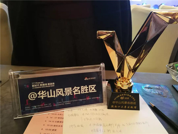 華山風景名勝區(qū)官博在2018陜西政務V影響力峰會斬獲大獎