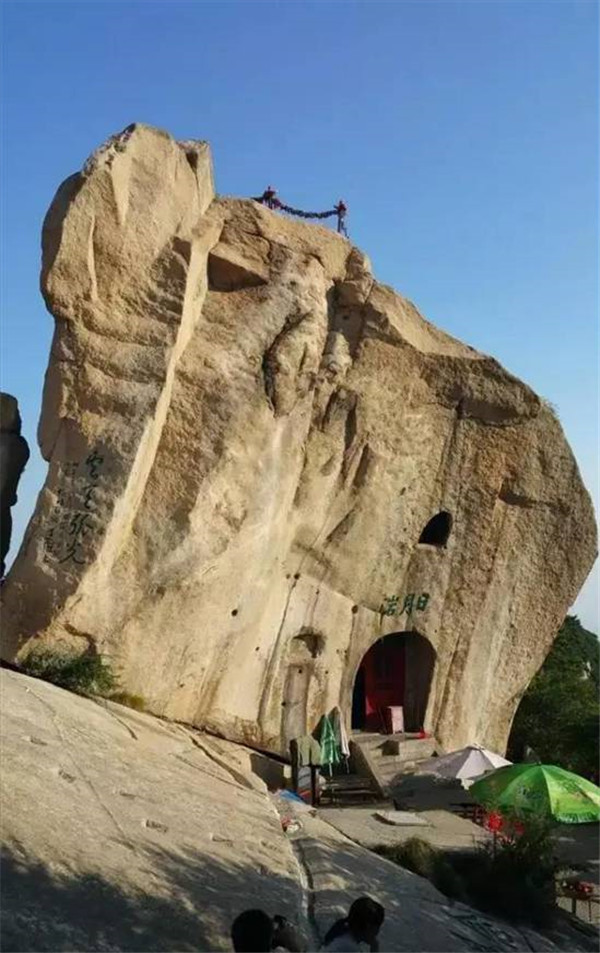 看過(guò)金庸武俠小說(shuō)的童鞋們,一定聽過(guò)全真教。那么全真崖呢?它位于南天門西,為松檜峰頂向南懸空傾伸之崖石。出南天門越長(zhǎng)空棧道可至崖下。崖腹部有賀老石室,是元初道士賀志真開辟的修行之地?!赌戏逵洝分杏浭觯?ldquo;巖類俯首形,遙覆室上,上書“全真巖”三字,赤色以實(shí)之。雖知人所為,然上不可下,下不可上,其履虛而作之邪?何其神也!”