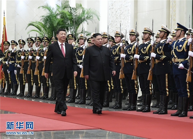 會談前,習(xí)近平在人民大會堂北大廳為金正恩舉行歡迎儀式。