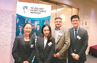 圖為張婧怡(左二)參加墨爾本大學(xué)小微金融協(xié)會的案例分析大賽時與隊友們的合影。