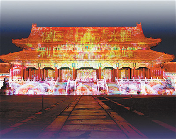 絢爛燈光下的故宮太和門。本報記者張武軍攝