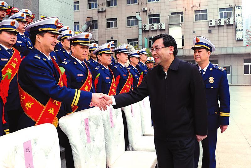 胡和平強調(diào),組建國家綜合性消防救援隊伍是黨中央適應(yīng)國家治理體系和治理能力現(xiàn)代化作出的戰(zhàn)略決策。改革轉(zhuǎn)制后,綜合性消防救援隊伍作為應(yīng)急救援的主力軍、國家隊,承擔著防范化解重大安全風險、應(yīng)對處置各類災(zāi)害事故的重要職責。希望大家深入學習貫徹習近平總書記在國家綜合性消防救援隊伍授旗儀式上的重要訓詞,牢記“對黨忠誠、紀律嚴明、赴湯蹈火、竭誠為民”要求,為新時代追趕超越作出新的更大貢獻。