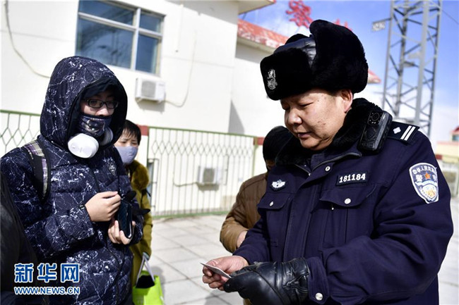 2月21日,王建康在剛察站查看旅客證件。