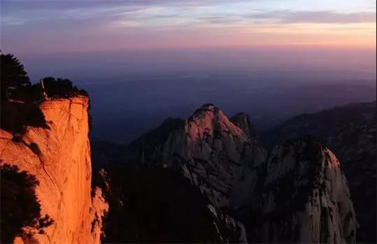 華山觀日處位于華山東峰( 亦稱朝陽峰) ,朝陽臺為最佳地點。東峰又名朝陽峰。海拔2096.2米,峰頭斜削,絕壁千丈,山勢壯麗,古松參天。上有朝陽臺為東峰絕頂,登臨而上,可以觀云海日出。每當(dāng)晴天破曉之際,一輪紅日冉冉升起,照耀著華山和周圍許多如削如切的山峰,景色瑰麗。