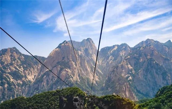 D2、早晨看完日出后,游覽東峰、南峰、西峰、五云峰、中峰和北峰后,可乘坐索道(三特)或徒步由“智取華山路”下山至瓦廟溝,乘車出山,也可由“自古華山一條路”下山后返程。