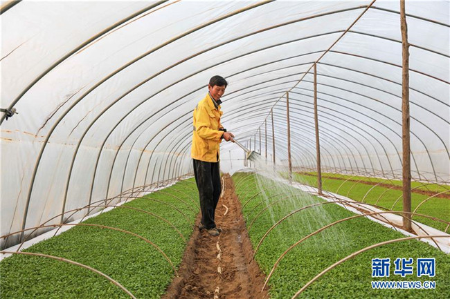 3月11日,在明光市管店鎮(zhèn)甜葉菊育苗扶貧基地,農(nóng)戶(hù)在甜葉菊育苗大棚內(nèi)忙碌。新華社記者 曹力 攝