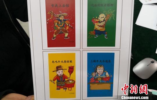 在眾多的漫畫中,有一組設(shè)計(jì)水滸英雄吃面的造型吸引眼球。漫畫中的英雄人物花樣“秀”吃面,配著“雪夜上面館”“吃面倒拔垂楊柳”“三碗牛大不過崗”等文字。