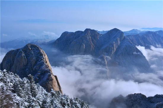 華山以奇險峻秀聞名于天下,素有“奇險天下第一山”之稱。明代著名地理學(xué)家徐霞客的游記中描述:“未入關(guān),百里之外,即見太華山搜索兀出云表。”