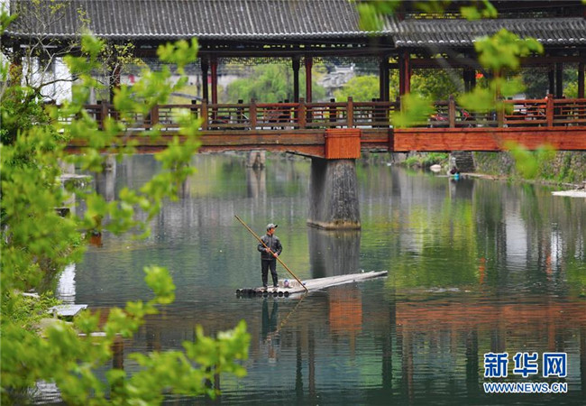 4月3日,瑤里古鎮(zhèn)的工作人員在清理河道。 時(shí)下,位于江西省景德鎮(zhèn)市浮梁縣的瑤里古鎮(zhèn)風(fēng)景如畫,吸引不少游客。 新華社記者 胡晨歡 攝