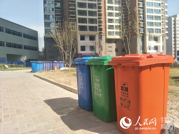 蘭州市某小區(qū)設立的分類垃圾桶 (高翔 攝)