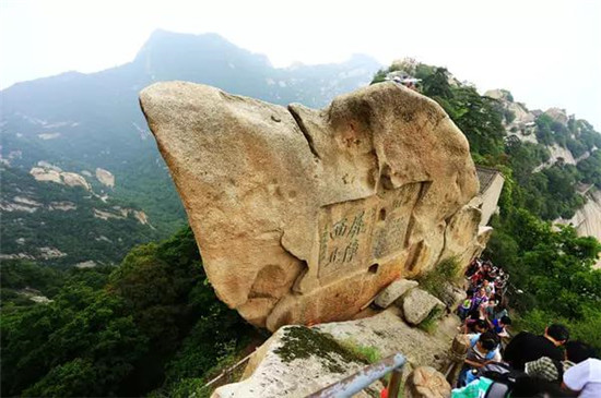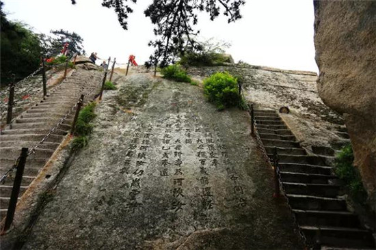 華山系一塊完整碩大的花崗巖體構(gòu)成,歷史衍化可追溯至27億年.“太華之山,削成而四方,其高五千仞,其廣十里。”華山之險(xiǎn)居五岳之首,登山之路蜿蜒曲折,長達(dá)12公里,到處都是懸崖絕壁,有“自古華山一條道”的說法。