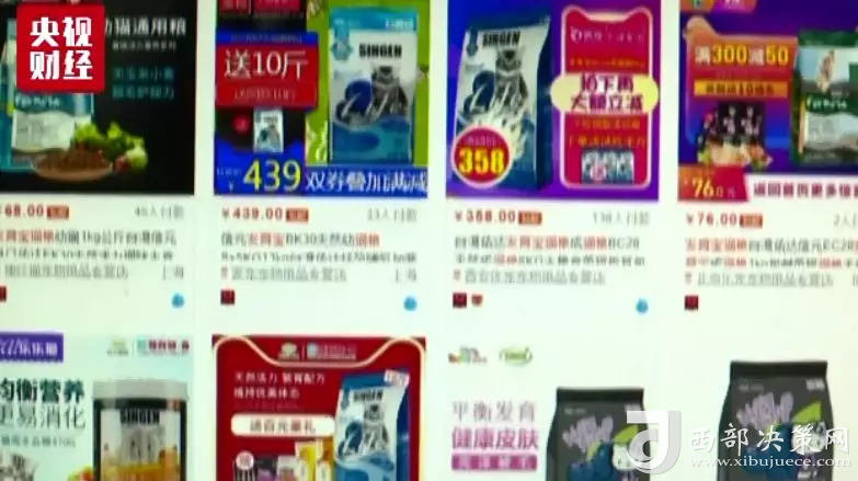 在網(wǎng)購(gòu)平臺(tái)搜索寵物日常糧食用品,商品數(shù)量可達(dá)上百頁(yè)。銷量最好的貓糧,月銷售量達(dá)到6.5萬(wàn)筆。