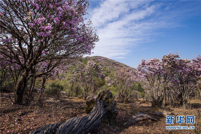 4月23日,戶外愛(ài)好者經(jīng)過(guò)龍頭山野生杜鵑花。 近日,四川省攀枝花市鹽邊縣龍頭山十余萬(wàn)畝野生杜鵑花盛開(kāi),吸引省內(nèi)外游客前來(lái)登山賞花。 龍頭山位于四川省攀枝花市鹽邊縣北部的紅寶苗族彝族鄉(xiāng)境內(nèi),這里的野生杜鵑花花期為2月至5月。 新華社記者 江宏景 攝