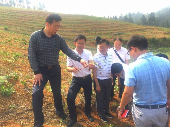 宋建朝委員(左一)在安順市西秀區(qū)檢查安順山藥生長情況