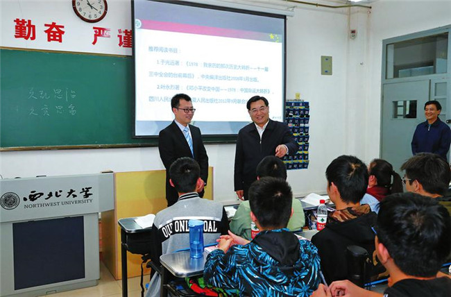 4月28日,省委書(shū)記胡和平到西北大學(xué)調(diào)研學(xué)校思想政治理論課建設(shè)情況。胡和平隨堂聽(tīng)取趙沛老師講授的毛澤東思想和中國(guó)特色社會(huì)主義理論體系概論,并與師生交流學(xué)習(xí)感想。 記者 宋紅梅攝