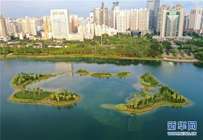 廣西南寧市從2017年底啟動(dòng)南湖水質(zhì)改善項(xiàng)目。經(jīng)過一年多的建設(shè),已形成水面人工島花香四溢、水下水草依依的生態(tài)凈化系統(tǒng)。加之步道、涼亭、長廊等配套工程的建設(shè),南湖成為廣大市民休閑觀光和鍛煉的重要場所。 新華社記者 周華 攝