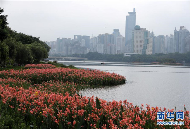 這是廣西南寧市南湖沿岸風(fēng)景(5月15日攝)。