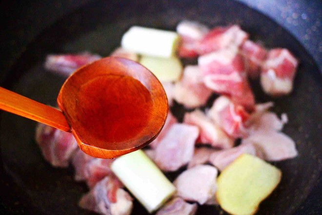7.鍋中燒熱倒入花生油,放入冰糖小火慢慢炒至融化變成黃色。