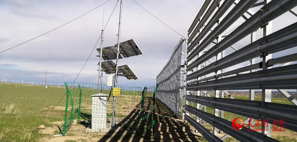 克塔鐵路線上設(shè)置的風(fēng)吹雪監(jiān)控設(shè)備。中國鐵路設(shè)計集團(tuán)有限公司克塔鐵路項目部供圖
