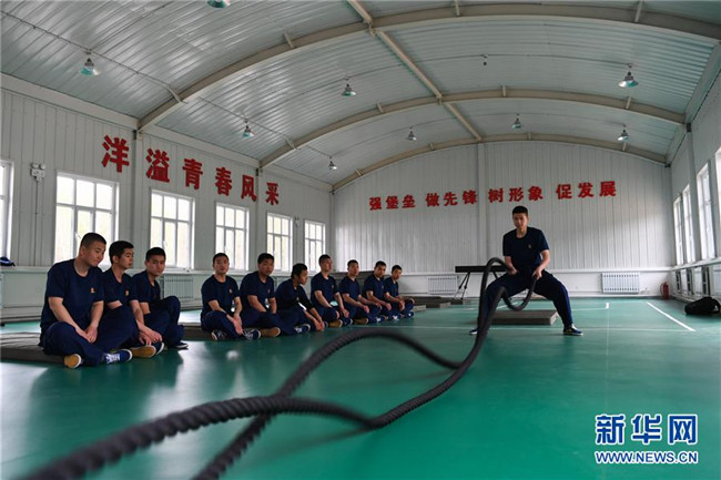 奇乾中隊的消防隊員在營地室內(nèi)訓(xùn)練(5月16日攝)。新華社記者 劉磊 攝