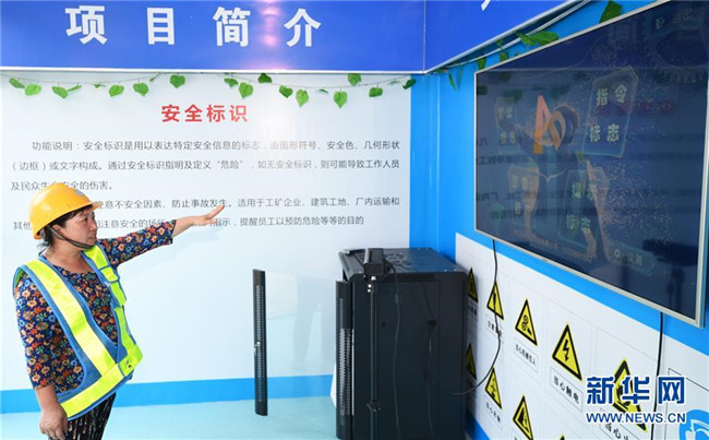 6月5日,重慶化龍橋超高層項(xiàng)目工人在VR安全體驗(yàn)館內(nèi)通過(guò)特種標(biāo)識(shí)識(shí)別系統(tǒng)學(xué)習(xí)安全標(biāo)識(shí)。新華社記者 王全超 攝