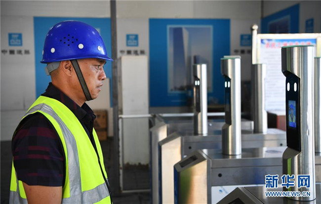 6月5日,重慶化龍橋超高層項(xiàng)目工人通過(guò)人臉識(shí)別系統(tǒng)離開工地。 新華社記者 王全超 攝