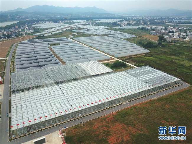 這是江西省于都縣梓山鎮(zhèn)富硒農(nóng)業(yè)產(chǎn)業(yè)園一景(2018年9月28日無人機拍攝)。新華社記者 胡晨歡 攝