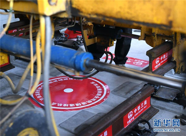 6月12日,在京張高鐵清華園隧道,最后一組鋼軌到達軌道鋪通接軌點。新華社記者 張晨霖 攝