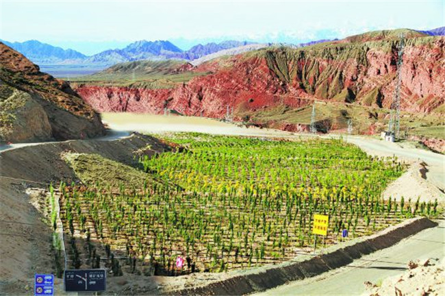 新疆紫金鋅業(yè)在礦區(qū)內(nèi)新植的樹苗正茁壯成長(攝于6月3日)。肖鐵龍攝