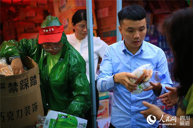 6月19日,宜賓長(zhǎng)寧地震后的第二個(gè)清晨,安置點(diǎn)群眾領(lǐng)取了免費(fèi)的早餐。(人民網(wǎng) 朱虹 攝)