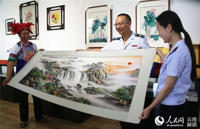 沉下心來(lái)學(xué)習(xí)刺繡的王陸芬朝著自己的小目標(biāo)努力。白天,她向村里的老人們學(xué)習(xí)刺繡技法,學(xué)習(xí)構(gòu)圖、畫(huà)圖,晚上就在家里刻苦練習(xí)。一有機(jī)會(huì),王陸芬就出去考察學(xué)習(xí)。“有一年去上海考察,看到他們的刺繡還沒(méi)有我做的精細(xì),沒(méi)想到價(jià)格還很貴。”這讓王陸芬堅(jiān)定了自己的想法,在王陸芬的帶動(dòng)下,白沙坡村成立了刺繡協(xié)會(huì),協(xié)會(huì)一開(kāi)始只有26人。2014年2月,技藝日臻成熟的王陸芬成立了“紙藝刺繡農(nóng)民專業(yè)合作社”,2015年成立硯山縣華韻手工刺繡有限公司。