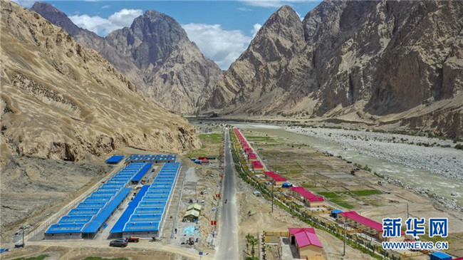 這是在新疆塔什庫爾干塔吉克自治縣大同鄉(xiāng)拍攝的阿克托尕欄桿村西拉夫迭易地扶貧搬遷安置點(6月18日無人機拍攝)。新華社記者胡虎虎攝