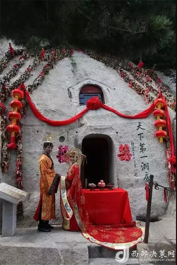 洞房周圍溪水環(huán)繞,譚似明鏡,當(dāng)年簫史開弄玉一對有情人為追求忠貞不渝的愛情,放棄皇室的榮華富貴,忍受生活的清貧艱辛,攜手來此鑿洞成婚,演譯了人世間一段至真至愛,蕩氣回腸的愛情故事,洞房一詞也同此而誕生,因此它是愛情山的見證,多少年來無論是一對對相濡以沫的夫妻,還是一對對相識的戀人,一次攜手華山游,必將情深意濃,愛情甜蜜,恩愛幸福。