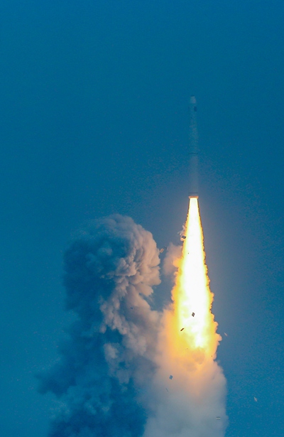 長(zhǎng)征十一號(hào)運(yùn)載火箭海上發(fā)射瞬間。中國(guó)運(yùn)載火箭技術(shù)研究院供圖