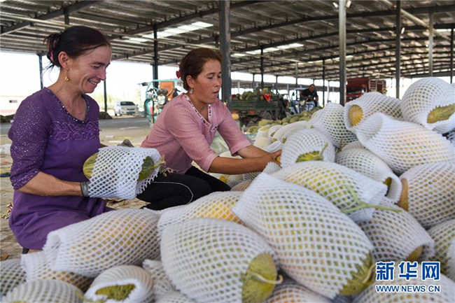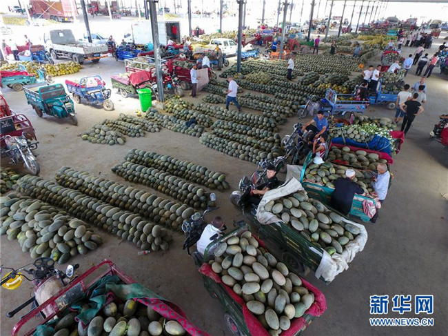 夏秋之交,正是新疆瓜果飄香的時節(jié)。近日,喀什地區(qū)伽師縣20余萬畝伽師瓜大量上市。在瓜田里,瓜農們忙著采摘伽師瓜;在批發(fā)交易市場,到處可見包裝、搬運伽師瓜的瓜農和客商,一派繁忙的景象。