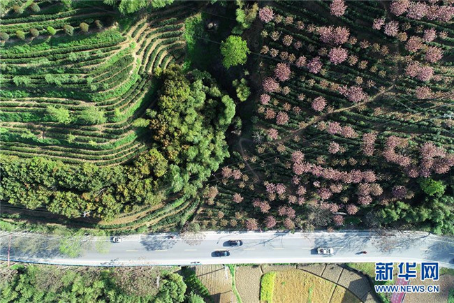 這是安康市平利縣長安鎮(zhèn)高峰村洪福茶山景色(4月4日無人機(jī)拍攝)。新華社記者 邵瑞 攝